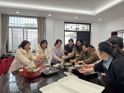 在他的带动下,女职工们也热情高涨地投入到包饺子的环节中。有的女职工手法娴熟,一看就是“厨房小能手”,包出的饺子精致饱满、鼓鼓囊囊;有的女职工明显是初次尝试,不是漏馅儿了就是皮破了,但她毫不气馁,仍是全情投入;有的年轻女职工直接现场拜师求赐教,大家分工明确、配合默契,在欢声笑语中享受着劳动的乐趣。