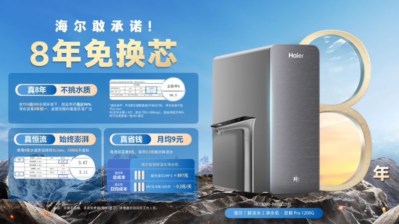 海尔净水行业首推8年滤芯保障