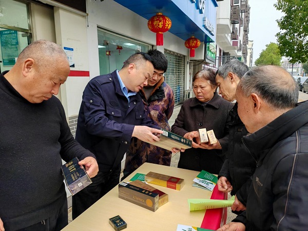 “您看,真烟包装的烫封线条均匀,而假烟的烫封往往粗糙不平。”活动现场,真假卷烟对比展台吸引了众多群众驻足。工作人员手持放大镜,逐一向消费者演示“看包装、摸材质、查编码”的鉴别技巧,并针对黄鹤楼、利群等本地常见品牌卷烟,详细讲解防伪标识、印刷细节等关键特征。通过“实物展示+情景教学”的方式,帮助消费者掌握“一眼辨真假”的实用技能。