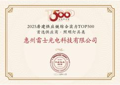 3月19日《2025房建供应链企业综合实力TOP500-首选供应商服务商测评报告》于北京正式发布,雷士照明以16%的品牌首选指数蝉联“房建供应链企业综合实力TOP500-首选供应商·照明灯具类”TOP1!
