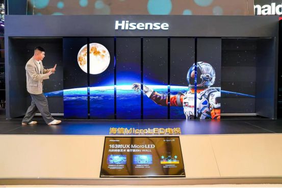 作为行业首个拥有Micro LED芯片研发、驱动控制、精密封装、图像增强、画质还原五大核心技术体系的企业,海信电视展出了全球首款自发光136吋和163吋Micro LED电视,集成2488万颗Micro LED芯片,并率先为客户打造48nit观影模式,精准匹配DCI影院标准,重构高端家庭影院视觉体验;海信Micro LED以“尺寸自由化”、“形态场景化”重新定义显示边界,支持自由拼接,最大可支持定制到271英寸。