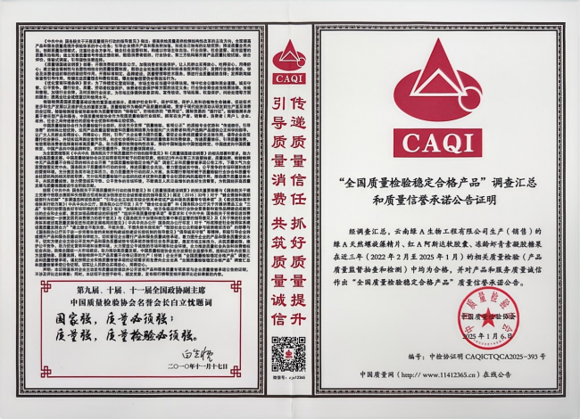 在由中国质量检验协会主办的2025年“3.15”国际消费者权益日“产品和服务质量诚信承诺”主题活动中,作为微藻产业唯一受邀企业,绿A生物凭借产品质量和贴心服务等方面的突出表现,再次蝉联“全国产品和服务质量诚信承诺企业”称号,旗下天然螺旋藻精片、红A 阿斯达软胶囊、冻龄虾青素凝胶糖果荣膺“全国质量检验稳定合格产品”殊荣。这不仅是对绿A生物坚守质量底线的权威认可,更成为大健康产业质量管理的标杆典范。