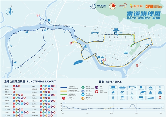 在继续沿用经典赛道的基础上,把起终点合一,均为处州公园,赛道串联瓯江绿道、南明湖、丽水市水上运动中心等地标建筑。