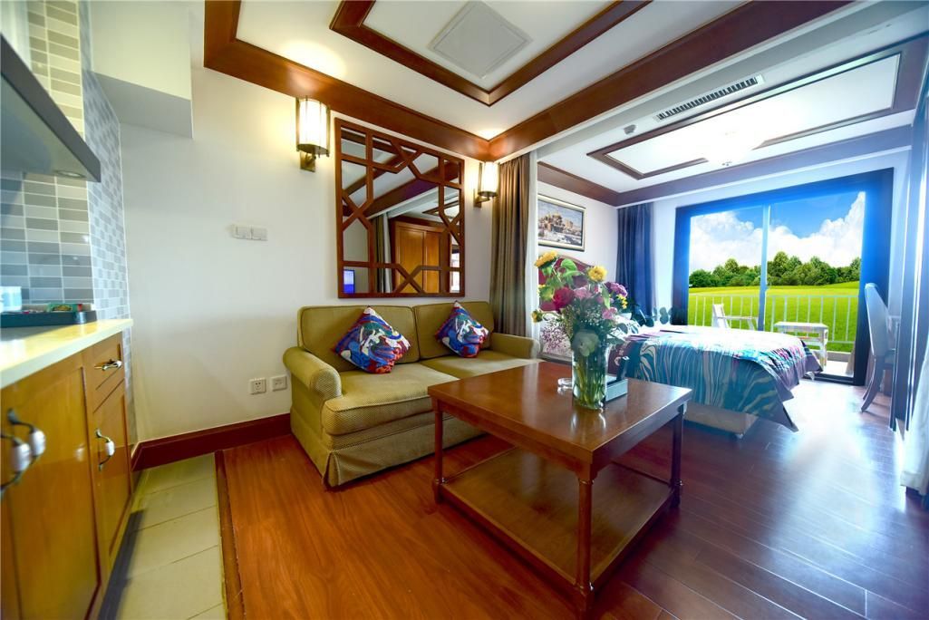 域见度假酒店:四星级标准,提供一室一厅、两室一厅、亲子房等多种房型,配备独立阳台、开放式厨房、洗衣机及烘干机等设施。