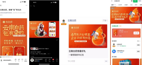 云南白药通过新鲜场景赋能品牌心智营销,打造节日送礼新风尚,开启社交电商新活力。此次微信蓝包的营销推广,获得高效曝光超5000万+次,点击互动量超50万+次,助力品牌实现医药行业的快速占位,持续加深微信域内的声量、好感度、转化力。健康生活理念的有效传播推动社会健康意识提升,彰显了云南白药作为国民健康守护者的责任与担当,以实际行动践行了“健康中国”战略。