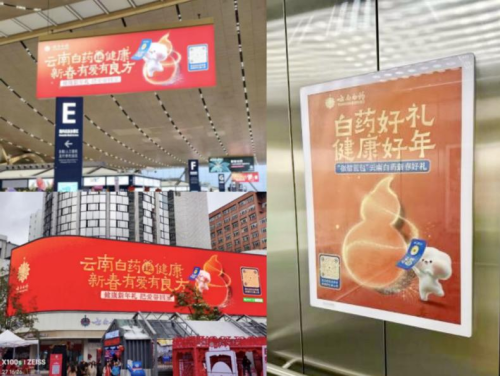 线下昆明机场、云南白药集团电梯、南屏街多屏上线蓝包健康礼视觉素材,布局健康新年礼场景,进一步加深“送云南白药就是送健康”心智。消费者在日常触媒场景中,无论是线上浏览信息还是线下交流互动,都能频繁接触到品牌传递的健康理念。