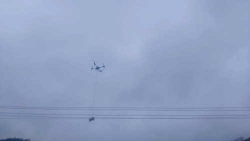 图为无人机运输肥料场景(黄馨醇摄)