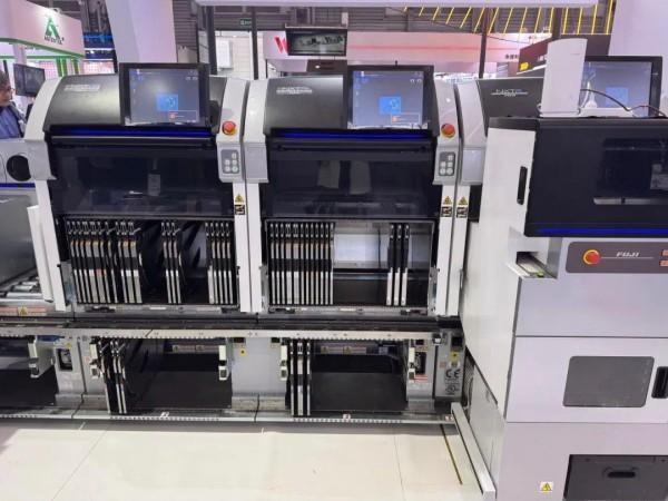 在贴装技术方面,FUJI的展台吸引了大量目光,其NXTR A 机型通过智能加载车实现供料器自动更换与补料,支持多品种混线生产与连续供料,显著减少换线时间与人工干预。其模块化设计允许自由组合 1R/2R 模组,搭载轻量工作头实现快速更换,并可按需扩展产能。贴装精度达 ±15μm(高精度模式),配备动态高度补偿功能应对电路板翘曲,集成 MPI 贴装确认、IPS 元件检测、3D 共面性检测等多重品质保障。新型工作头支持 0201 至 200×150mm 超宽元件范围,配合双机械手 60,000cph 顶级贴装速度,单轨可处理 750×610mm 大型电路板。此外,还有优势显著的NXTR S 机型,据悉它采用独特的模块化设计,能依生产需求灵活构建理想生产线,可从单模组逐步扩展。其贴装精度高,支持 ±25μm 常规贴装和 ±15μm 高精度贴装,还能动态调整贴装高度应对电路板翘曲,内置 MPI 功能可在机内实时检测贴装状态。搭载的 RH 系列工作头能覆盖 0201 至 200×150mm 多种元件,双轨搬运可处理 750×610mm 大型板和 370×280mm 小板,满足多样化生产。