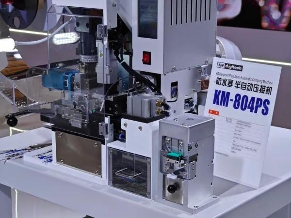 在线束设备领域深耕30年的资深玩家,凯睦自动化本次带来了其全新推出的+防水塞半自动压接机KM-804PS。对于多芯电线,全自动压接机通常很难进行脱皮及插防水塞的工艺,半自动设备KM-804PS则可以轻松做到。内置压力监测器CFM (Crimp Force Monitor)是KM-804PS的标配之一,可自动检测压接不良。同时,配置将不良产品进行废弃处置的裁切装置。凭借在插入防水塞领域20年以上的经验,凯睦自动化将这项专业技术完美的复刻到了KM-804PS半自动设备上。另外,据介绍KM-804PS设备突破了现有全自动压接机的限制,可以搭载客户作业参数的应用程序。
