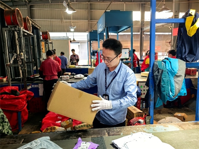 在实操培训中,仓库角落总摆着十余个"教学包裹"。导师将查获的假烟重新封装,让新人蒙眼触摸:"注意这个包裹底部的支撑感。""记住这种外软内硬的触觉差异。"经过细心的指导,新入职的大学生们已经大部分能够简单识别卷烟包裹和普通包裹的区别,将它们从众多的包裹堆中一一筛选出来。