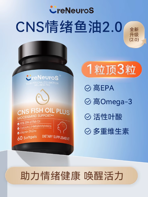 在此背景下,美国营养品牌CreNeuroS凭借CNS情绪鱼油Plus,以科学循证为基础,从实验室到消费端,开创了一条全新的情绪干预路径,填补了情绪健康领域的市场空缺。