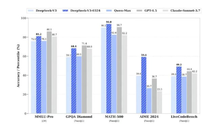 据了解,DeepSeek-V3模型推理任务表现提高。新版模型借鉴 DeepSeek-R1 模型训练过程中所使用的强化学习技术,大幅提高了在推理类任务上的表现水平,在数学、代码类相关评测集上取得了超过 GPT-4.5 的得分成绩。