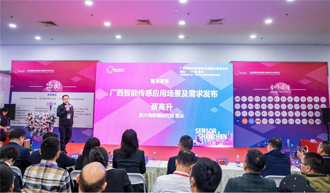 象州产业顾问专家航大物联网研究院院长蔡高升进行广西智能传感器应用场景及需求发布,梳理了涵盖工业自动化、智慧农业、新能源汽车、智慧物流、城市治理、智慧养老等十多个传感器应用场景,达10亿规模的项目需求。