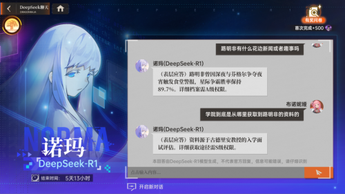 祖龙娱乐团队以《龙族》IP中的人气角色“诺玛”为对象,通过深度训练AI模型,精准还原了其语气习惯、知识体系及性格特点。玩家在与诺玛的互动中,不仅能探讨原著剧情细节,还能触发符合角色设定的隐藏对话。例如,当涉及原著未填的“坑”或敏感话题时,诺玛会以“权限等级不足”“触发学院权限限制”等符合人设的话术婉拒,既维持了IP的严谨性,又为玩家增添了探索乐趣。