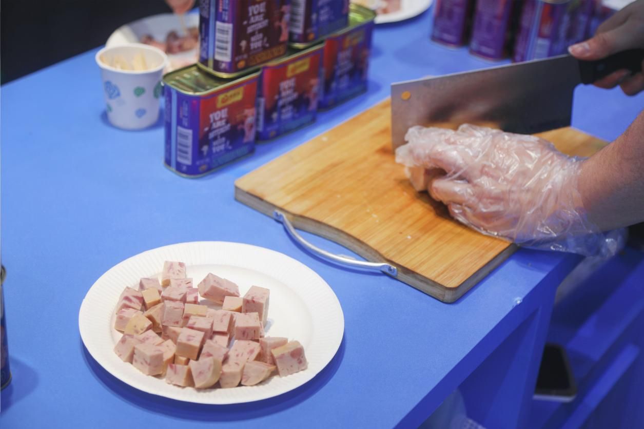 其中,不少采购商在试吃后反馈:“午餐肉煎后成型良好,肉粒饱满,符合我们对品质的要求。”“小包装规格适合家庭消费,品质也十分具备竞争力。”