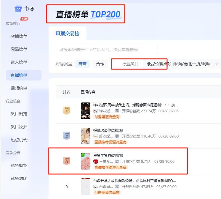 直播排名显示,在开播首日,三丰食业便位于抖音食品类目直播榜单全国第三。在直播间内,各大年龄段粉丝纷纷留言、互动热烈,弹幕高频出现“肉粒清晰”“性价比高”等评价。