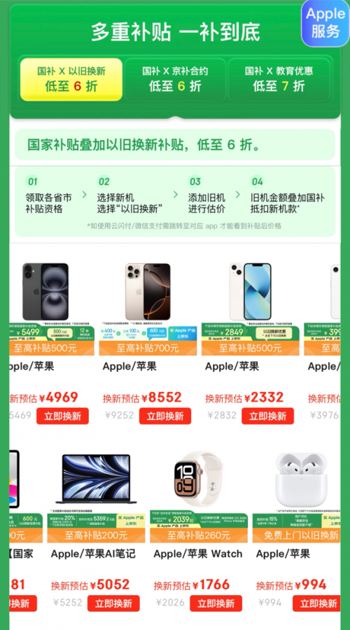 如果你也想在清明假期购买Apple产品,选择正常发货的京东不仅能够满足消费者的即时需求,“国补”叠加以旧换新低至6折的超低价格,还能有效降低购机门槛,为消费者带来实实在在的优惠,在假期也能轻松享受新机体验。