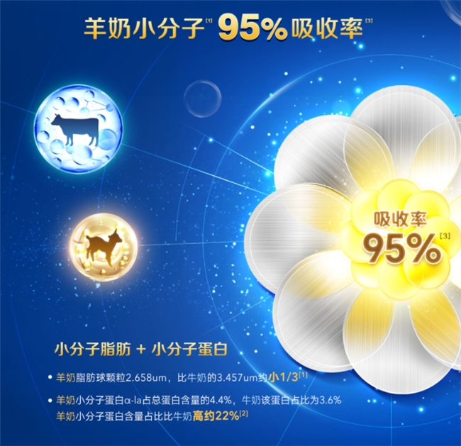 此时,羊奶粉的优势逐渐被科学验证:羊奶中致敏性较高的α-S1酪蛋白含量仅为牛奶的1/3,且羊奶的脂肪球颗粒更小(直径比牛奶小1/3),天然更易消化吸收,为牛奶过敏或敏感体质的宝宝提供了更温和的解决方案。