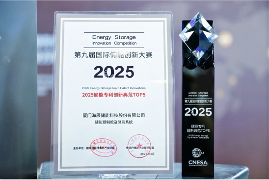 4月10日,第13届储能国际峰会暨展览会(ESIE2025)在北京隆重开幕,同期举办第九届国际储能创新大赛颁奖典礼,海辰储能基于超大电芯长时储能系统开发项目和储能预制舱及储能系统,分别摘获“2025储能技术创新典范TOP10”和“2025储能专利创新典范TOP5”两项大奖。