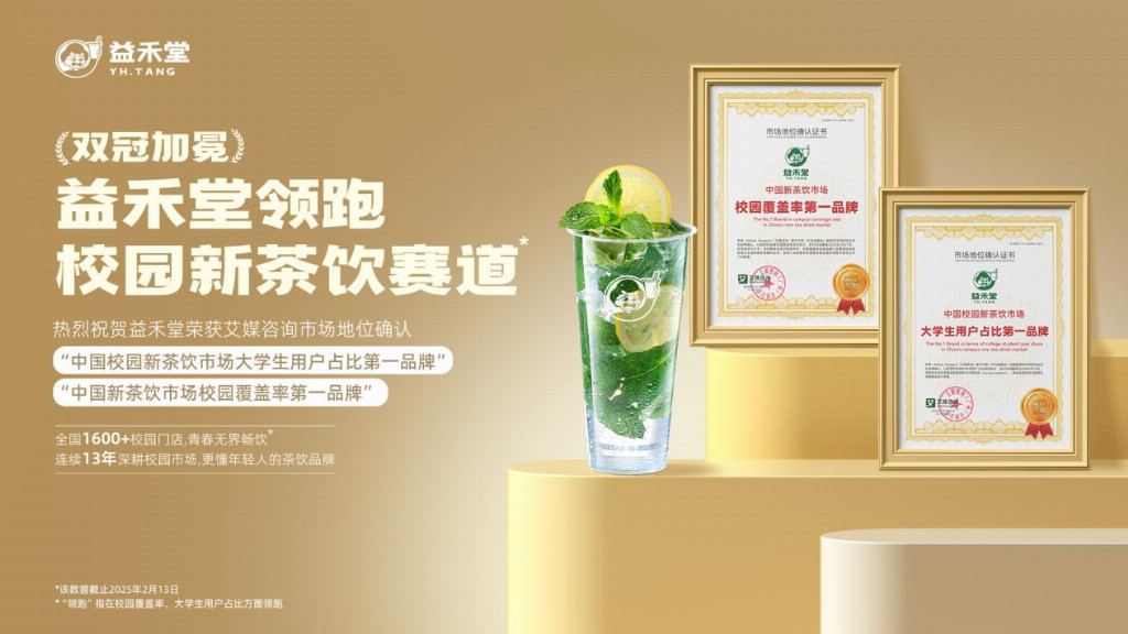 作为新茶饮行业先行者,益禾堂始终聚焦年轻消费群体,持续深耕校园市场。今年荣获艾媒咨询(iiMedia Research)颁发的“中国校园新茶饮市场大学生用户占比第一品牌”“中国新茶饮市场校园覆盖率第一品牌” 双冠认证殊荣。这一认证不仅彰显了益禾堂在年轻群体中的广泛影响力,更印证了其以用户需求为核心、持续优化消费体验的品牌初心。从大学城走出的茶饮品牌,始终保持着与年轻群体同频共振的敏锐度,这种"长期主义"的发展哲学,让益禾堂在茶饮红海中开辟出独特的品牌护城河。