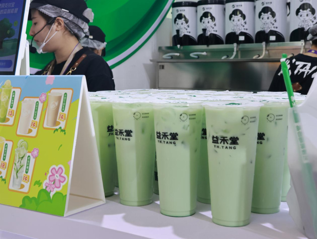 此次消博会,益禾堂不仅展出了经典老品“益禾烤奶”,还特别呈现了今年尤为爆火的“薄荷家族”系列——薄荷奶绿。当传统东方茶饮遇上薄荷的清新演绎,既是对经典茶饮文化的传承,更是对Z世代味觉喜好的创新回应。就在前几天,益禾堂进一步扩充产品矩阵,推出薄荷柠檬水、薄荷桃桃、薄荷香草奶砖等多款创新单品,以清爽口感与高颜值设计抢占夏日饮品市场。