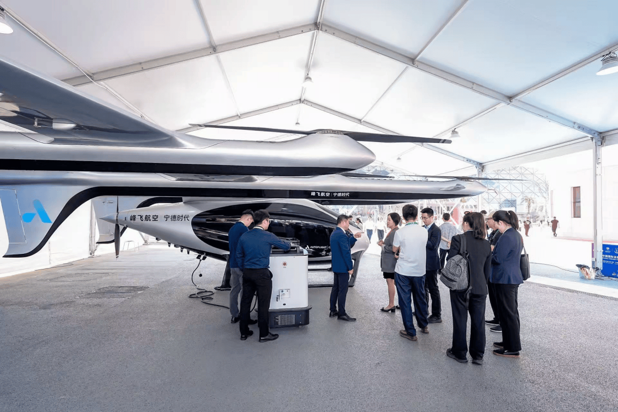 此次峰飞航空展出的 2 吨级 eVTOL 航空器,搭载了宁德时代专为航空器研发的高镍低硅电池系统,在纯电动力模式下,它不仅能让飞行器达到最高200公里/小时的巡航速度,拥有250公里的最大航程,还能轻松保障400公斤的商载。