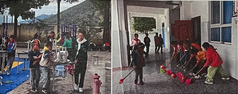 ▲孩子们在大扫除