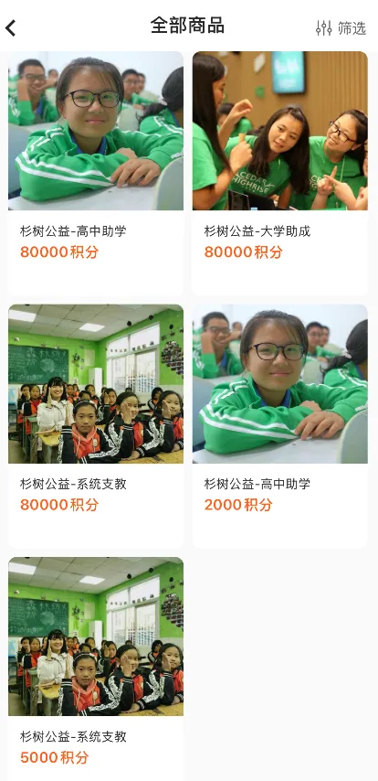 ▲积分商城内的公益项目