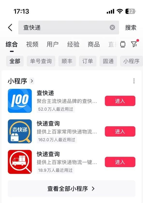 (二)快递100小程序成功入驻抖音,跃居“查快递”首位