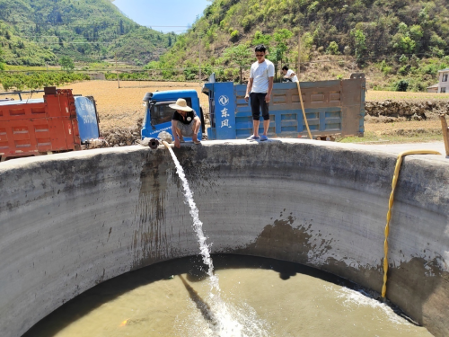 图为烟农蓄水场景(黄馨醇摄)