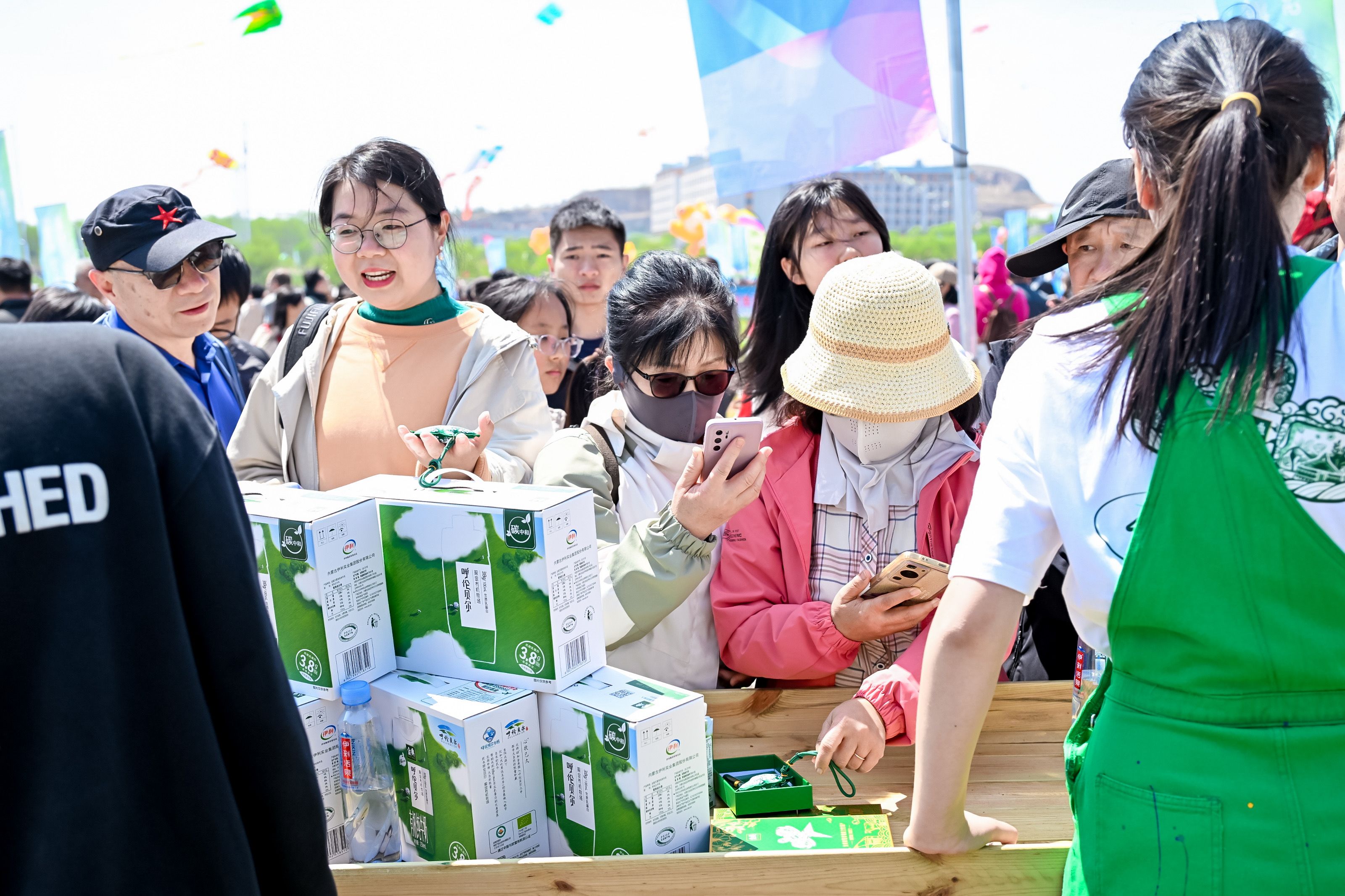 在潍坊风筝节主会场周边,金典特别搭建了“有机生活节“体验区,以呼伦贝尔草原为灵感,还原自然生态场景。现场提供高品质金典呼伦贝尔有机牛奶及创新派饮,将纯净奶香与春日清新风味结合,吸引众多消费者驻足品尝。