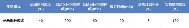 Step3:在操作软件上切换到“实验参数”界面,选择“绝热温升”模式,如表2-3所示设置实验参数;
