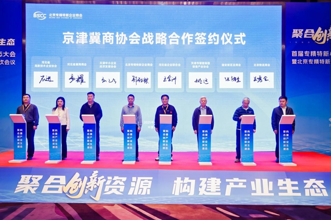 大会还促成了“京津冀商协会战略合作签约”,包括河北省高新技术企业协会、天津市中小企业经济发展协会、北京专精特新企业商会等八家机构现场签署战略合作协议,标志着三地在产业对接、政策协同、技术转移等方面将开展深度合作,共建创新生态圈。