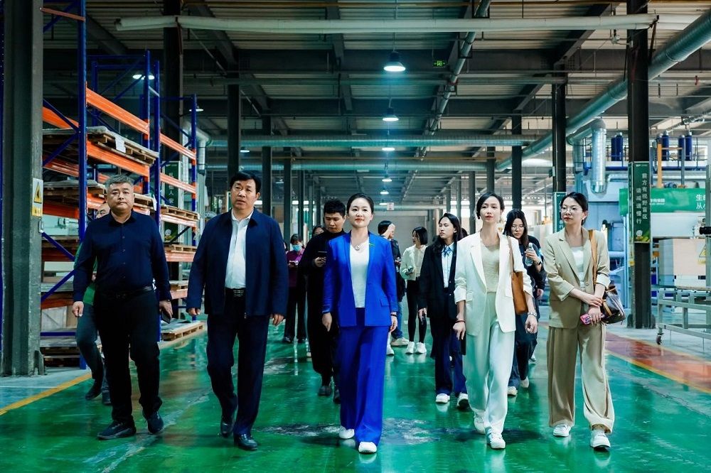 临沂工厂则通过十一条自动压贴生产线、一条PET生产线、两条成品检板线等高效配置,形成了完善的贴面板加工体系,承担着从基板到成品的高效协同任务。媒体们对其高效产线的自动化程度、现场管理的标准化流程以及产品质量的一致性纷纷表示赞赏。
