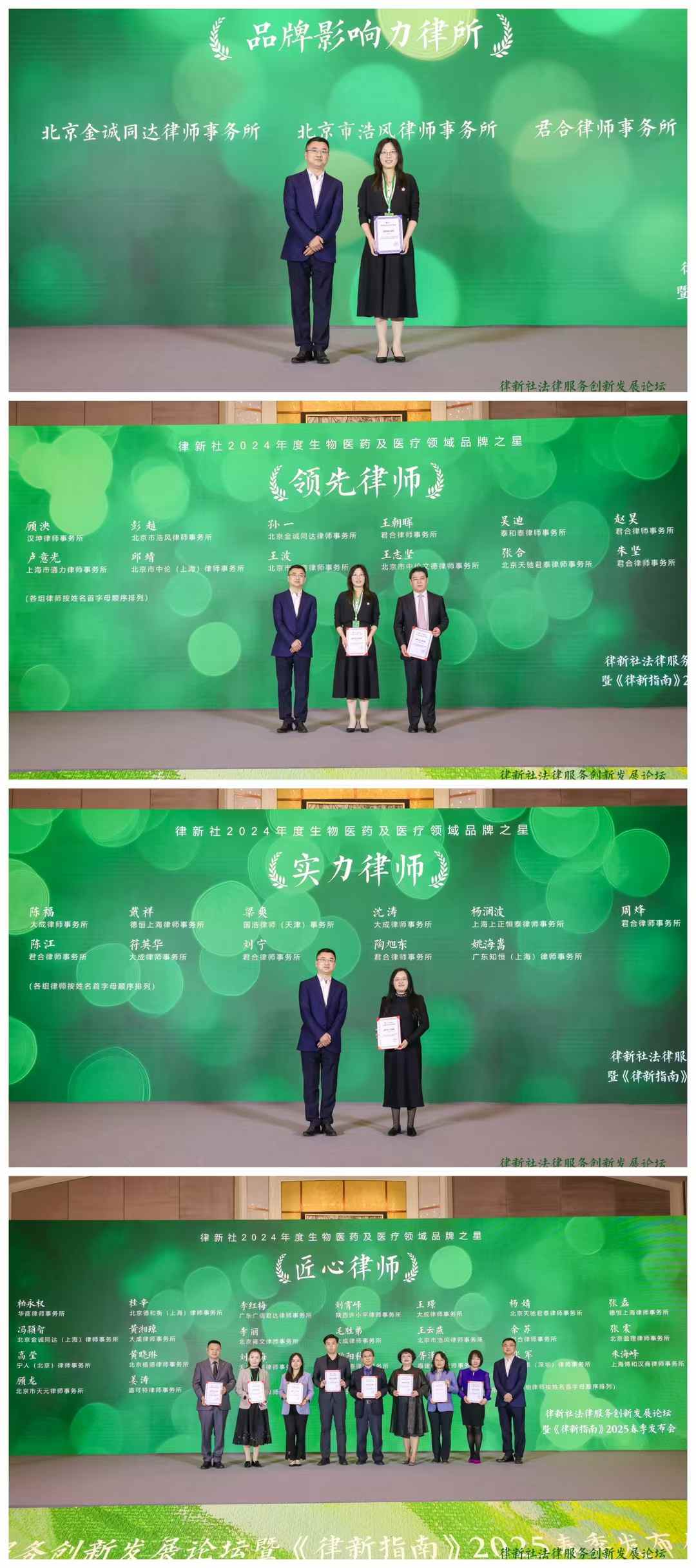 在现场嘉宾和线上观众的共同见证下,“律新社2024年度建设工程领域品牌影响力律所”“律新社2024年度建设工程领域品牌之星(卓越律师、领先律师、实力律师、匠心律师、新锐律师)”隆重发布。具体名单可在“律新V品”公众号、“律新帮”公众号、“律新指南”微信小程序上查看。