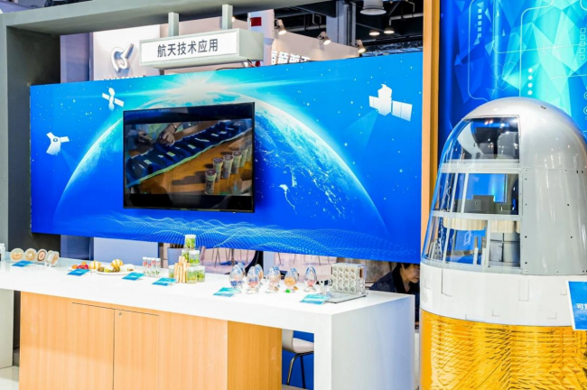 在中国航天科技集团五院航天技术应用展区,展出了实践19号实验卫星模型、空间生物实验装置、太空芦竹组培苗、航天种子、太空试管玫瑰、微生物菌种及东方红航天生物航天技术应用产品等,吸引了众多参观者的目光。
