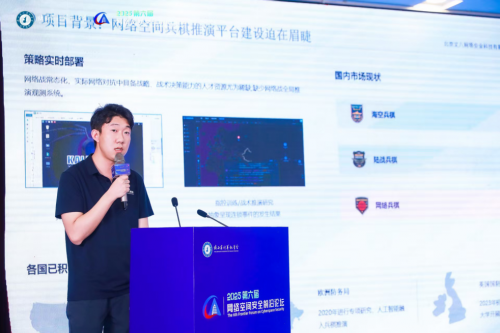 2025年4月26—27日, 由陕西省计算机学会主办的“2025第六届网络空间安全前沿论坛(简称‘常安论坛’)”在西安盛大开幕。期间,北京丈八网络安全科技有限公司(简称“丈八网安”)携自主创新成果重磅亮相。公司行业部负责人张鹏出席大会特色论坛——院长论坛,并发表《新一代网络靶场在实战型网安人才培养中的应用与实践》主题演讲,高级技术总监闫俊展示了前沿科技成果“丈八网络空间兵棋推演系统”,在现场受到广泛关注。