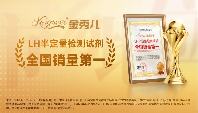 2025年4月,Kingsuer金秀儿获全球领先的新经济产业第三方数据挖掘和分析机构iiMedia Research(艾媒咨询)授予的“LH半定量检测试剂全国销量第一”市场地位确认。