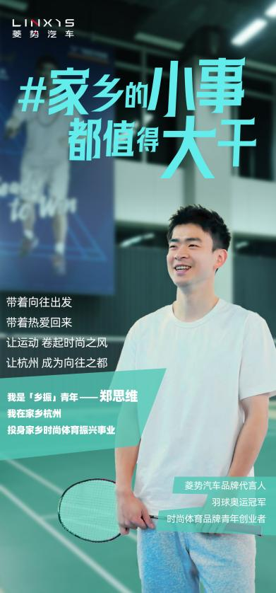 郑思维从国际赛场完美转身,开启人生征程2.0,选择回归浙江杭州。在坚持羽毛球训练的同时,他投身时尚体育产业,完成从世界冠军到运动潮牌创业者的转型。凭借对国际审美的敏锐把握,依托专业供应链资源,郑思维巧妙融合杭州优质的羽毛球运动氛围与电商产业优势,赋予羽毛球运动和装备更时尚的潮流属性。相信未来会有更多像郑思维这样的 “乡振青年” 回归家乡,为杭州注入蓬勃活力,让这座城市成为年轻人心驰神往的理想之地。