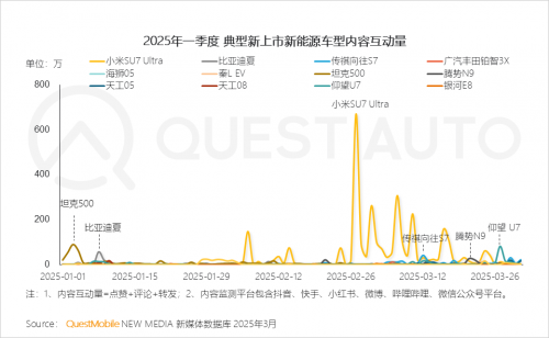 3、具体车系方面,近一年新上市车系展现出强劲的市场吸引力,星愿、小米SU7、秦L DM、小鹏MONA M03及理想L6成功跻身2025年一季度车系销量TOP10