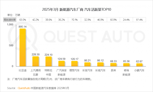 2025年一季度,纯电动汽车活跃量突破2000万辆,纯电续航平均里程进一步提升,达到457.6KM。
