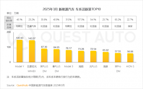 QuestAuto数据显示,截止2025年3月份,纯电动汽车、插电式混动汽车、增程式汽车月度活跃量分别为2091.27万辆、760.03万辆、239.40万辆,总量已经超过3000万辆;同时,纯电续航里程平均值已经达到457.6公里。