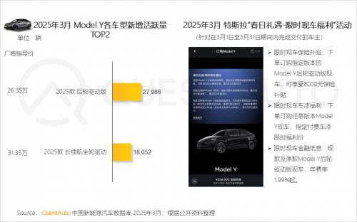 1.5 Model Y在系列限时促销活动带动下,3月新增活跃量表现亮眼,后轮驱动版及长续航全轮驱动版新增活跃量分别达到2.80万辆和1.80万辆