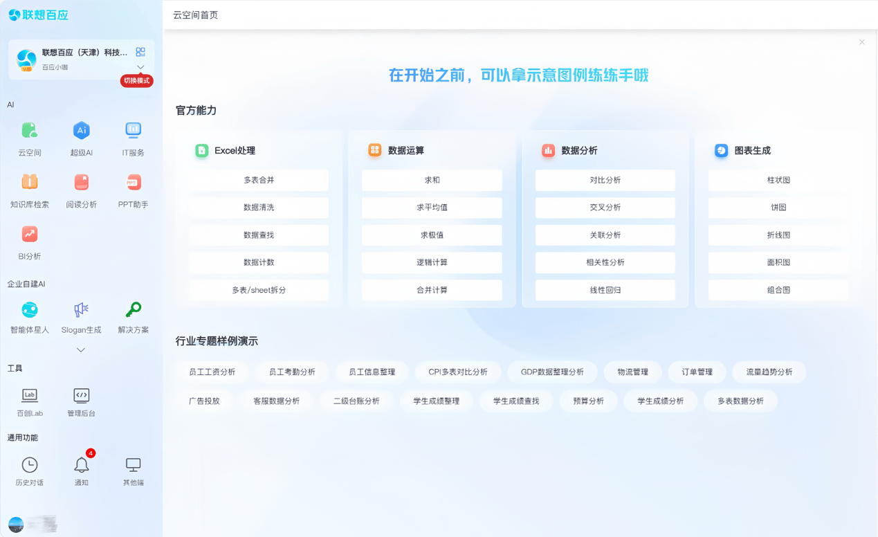 在办公场景,联想百应智能体1.5版本不仅让其独特的“三联屏”交互更丝滑流畅,还补全了企业办公智能体的能力——在原有的AI一键生成文档、三联屏内智能编辑、AI PPT等功能之外,全新推出了AI数据分析功能,开创了对话式Excel处理新体验。