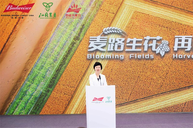 百威亚太可持续发展及采购副总裁杨凯在致辞中特别向本地农户及江苏农垦致以诚挚感谢,并表示:“正是与江苏农垦的紧密合作,让我们成功在本土培育出两个优质大麦品系与三个酒花品种,开创了高品质本土原料种植的新局面。通过引入前沿技术与创新理念,我们使大麦与啤酒花在产量增长的同时,在品质上也实现了质的飞跃。从田间到餐桌,未来,我们将与江苏农垦集团携手,持续赋能本地农户,推动啤酒行业高质量发展。”