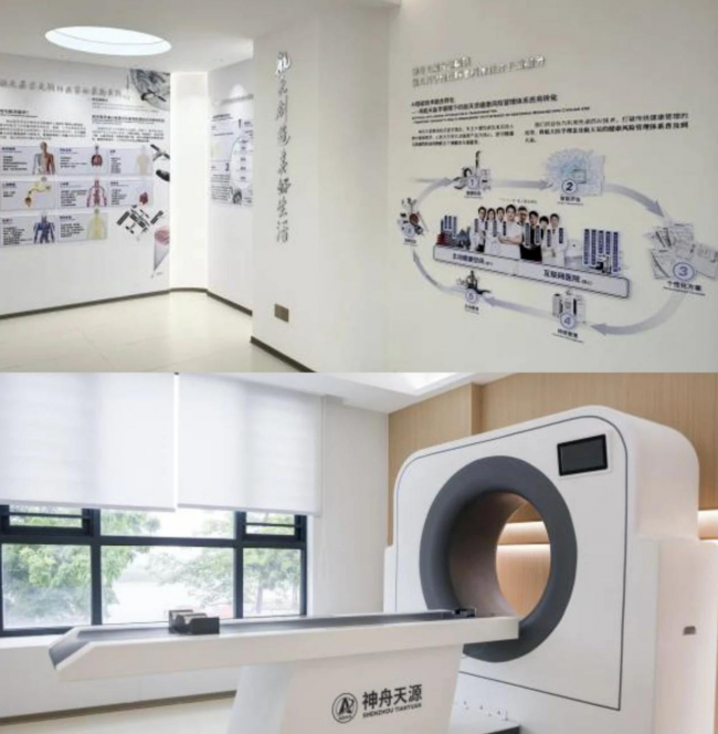 在新技术蓬勃发展的当下,大数据、人工智能等前沿核心技术可深度赋能慢病管理的各个环节,为慢病管理体系提供精细而高效的强大支撑。在神舟天源主动健康空间粤东店现场,可见一系列智能化健康管理设备和个性化服务设施,为“新老人”群体提供全方位的健康监测与干预方案。配备了先进的医疗检测设备,如心脑血管风险评估仪、骨密度检测仪等,结合神舟天源自主研发的健康医疗大模型,可为用户生成精准的《综合健康风险评估报告》。
