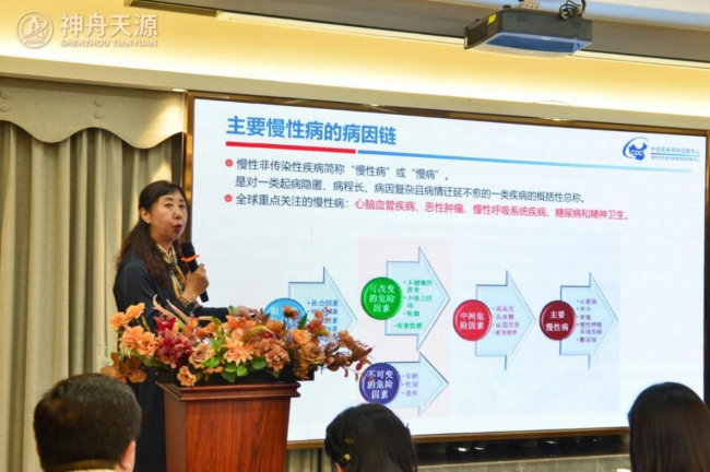 中国疾控中心慢病中心副主任王丽敏教授发布成果报告,作《慢病风险预测 助力健康管理》讲座。她从慢病流行形势、慢病防控策略与措施、风险预测循证研究等方面,分析了心脑血管疾病、恶性肿瘤、慢性呼吸系统疾病、糖尿病等慢性病的病因链、流行趋势等相关内容,为“银发族”做了专业系统的健康科普。