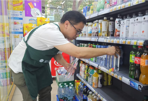 (图为客户经理帮忙整理货架)