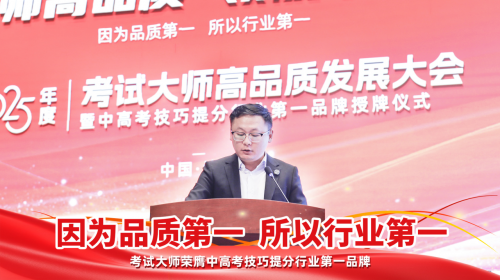 教育是星火燎原的坚守,品质是奔涌向前的激流。近日,2025年度考试大师高品质发展大会暨中高考技巧提分行业第一品牌授牌仪式在济南隆重启幕。这场汇聚教育智慧与行业期待的盛会,以“因为品质第一,所以行业第一”为内核,深度剖析了考试大师21年深耕教育行业的硬核实力:以科技赋能的产品力为矛,以情感联结的服务生态为盾,最终铸就行业标杆级的品牌影响力,实现产品力+服务力+品牌力三大领航,为中国教育高质量发展写下生动注脚,开启教育领域的崭新篇章。