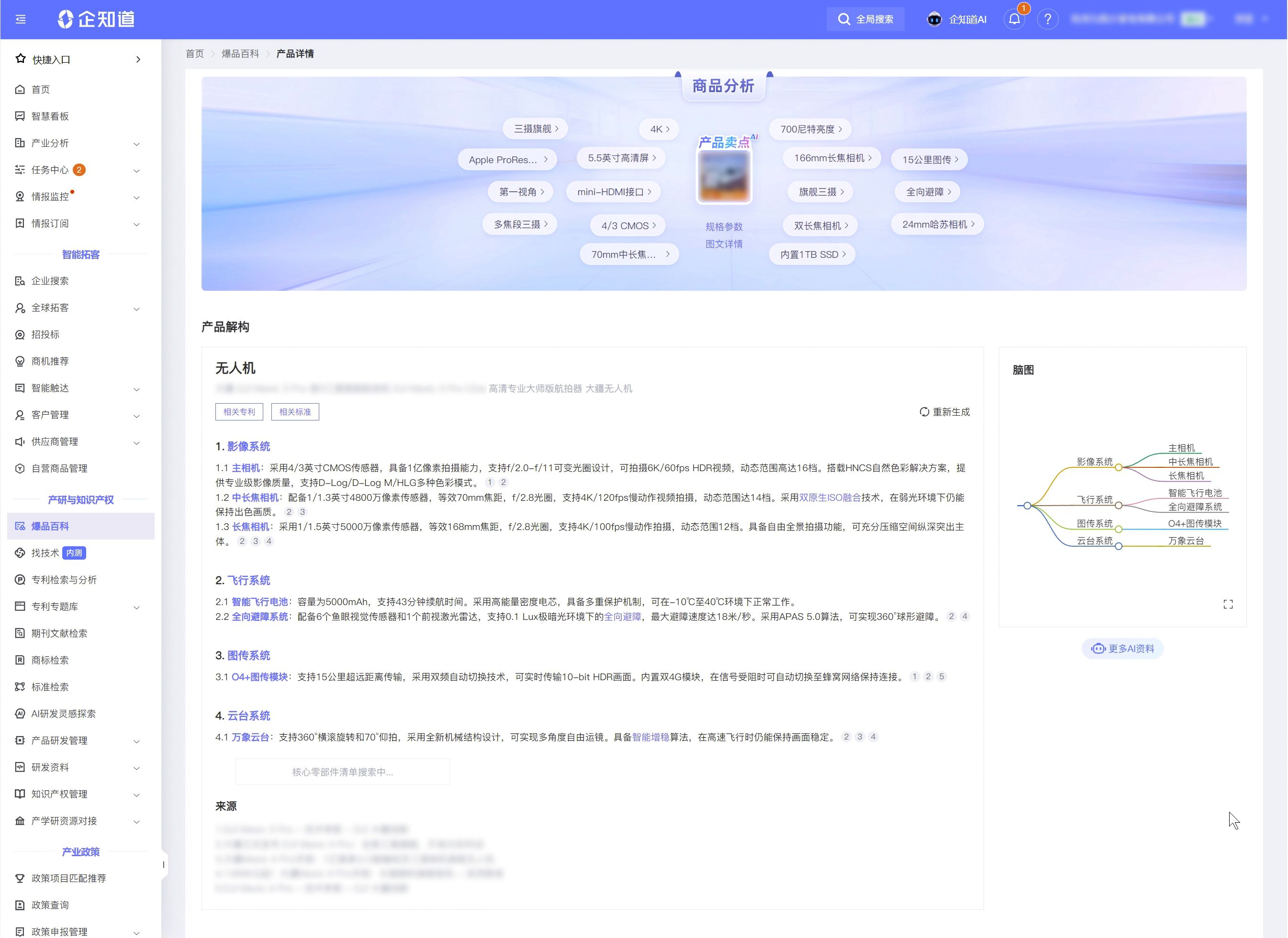 创新当然有风险,但聪明的企业可以利用企知道,将创新过程中的不可控因素,尽可能转化为可量化、可规划的路径。比如,在科创空间可以快速洞察技术脉络,分析演进路径,对比全球同领域爆款产品的技术参数与卖点,最终AI辅助生成差异化的创新策略,提高创新成功率。